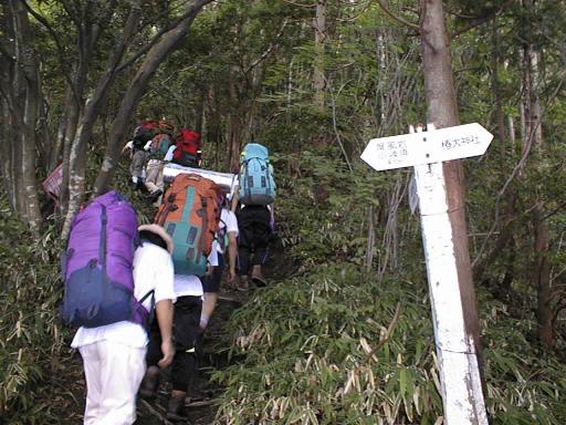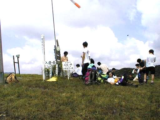 : ヒルの攻撃を受けつつ入道ヶ岳の頂上へ到着し、一休憩。 ”天然クーラ”最高!