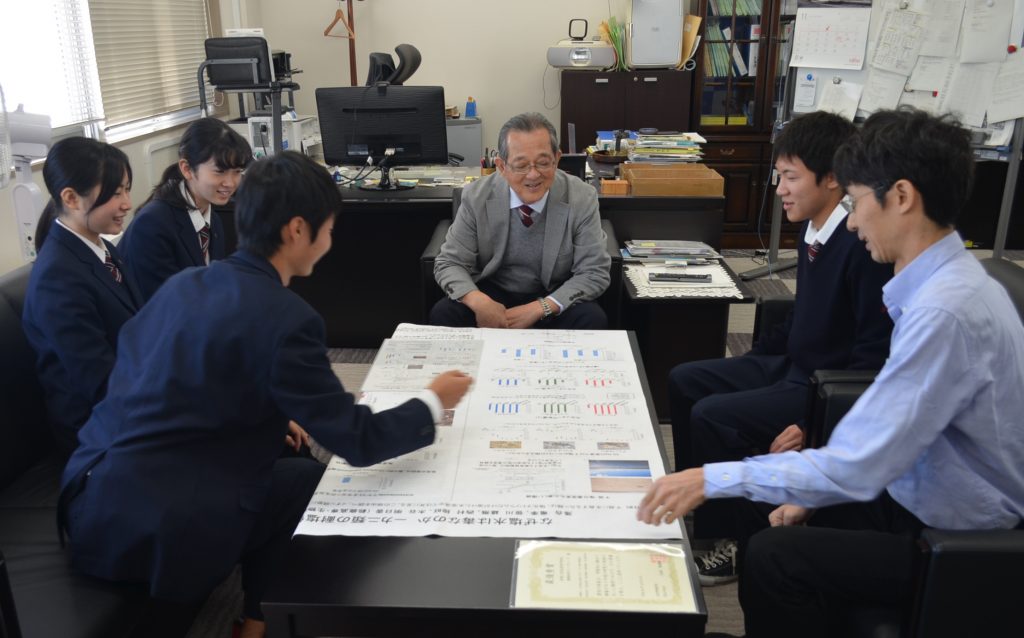 11月2日(木)、本校校長室にて、本大会で発表した学生らから新田校長へ受賞報告を行いました。新田校長は、学生からの熱心な研究内容の説明を聞き、今回の受賞を称えるとともに今後の研究にも大きく期待していました。