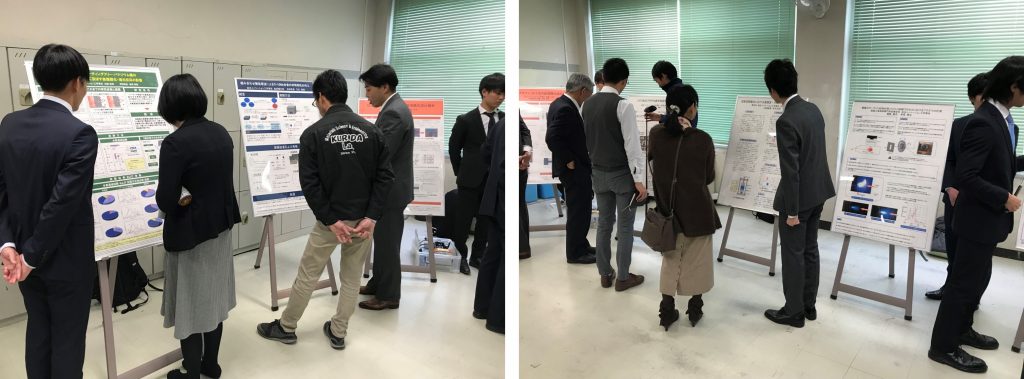 専攻科1年次が午前と午後の2回に分けて研究内容を発表し、午後は鈴鹿産学官フォーラムと連携して、自分たちが取り組んできた研究を様々な分野の方々に説明しました。この発表会は、専攻科生にとって、研究を外部に発表する機会となっています。