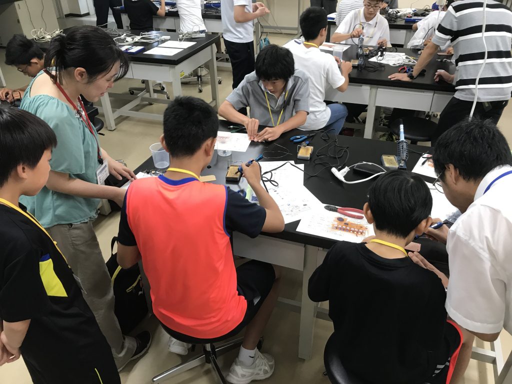 8月6日(火)~7日(水)、本校電気電子工学科にて、中学生を対象とした講座「楽しい電子回路工作」を開催しました。