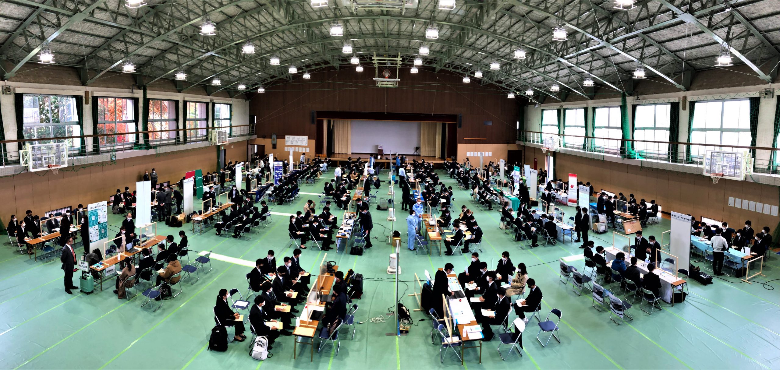 この業界説明会は、鈴鹿高専テクノプラザ(令和3年10月末日時点、会員企業数154社)を対象にコロナ禍での感染防止対策等を講じたうえでの対面方式による開催となり、参加希望された会員企業数60社が学生約250名の学生に対し、企業PRを行う場となりました。なお、コロナ禍の状況から令和元年10月以来の開催となりました。