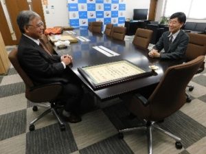 表彰状は、10月9日に文部科学省で開催された地方教育行政功労者表彰式にて授与され、10月21日に藤本校長へ受賞の報告を行いました。