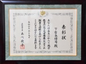下古谷博司副校長は、元鈴鹿市教育委員としての長年にわたる顕著な功績が認められ、このたび、文部科学大臣から地方教育行政功労者表彰を受けました。