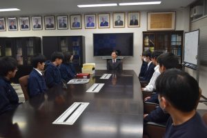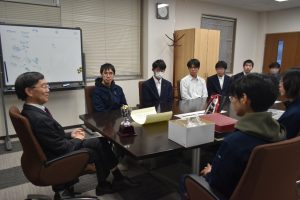 12月2日(火)、ロボコンプロジェクトの東海北陸地区高専ロボコン大会及び全国高専ロボコン大会の結果を藤本校長に報告しました。