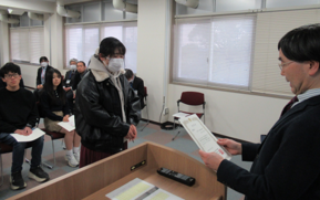 なお、読書体験記コンクールでは24名、エッセイコンテストでは46名の学生が佳作として選ばれ、賞状と副賞の図書カードが図書館から渡されました。