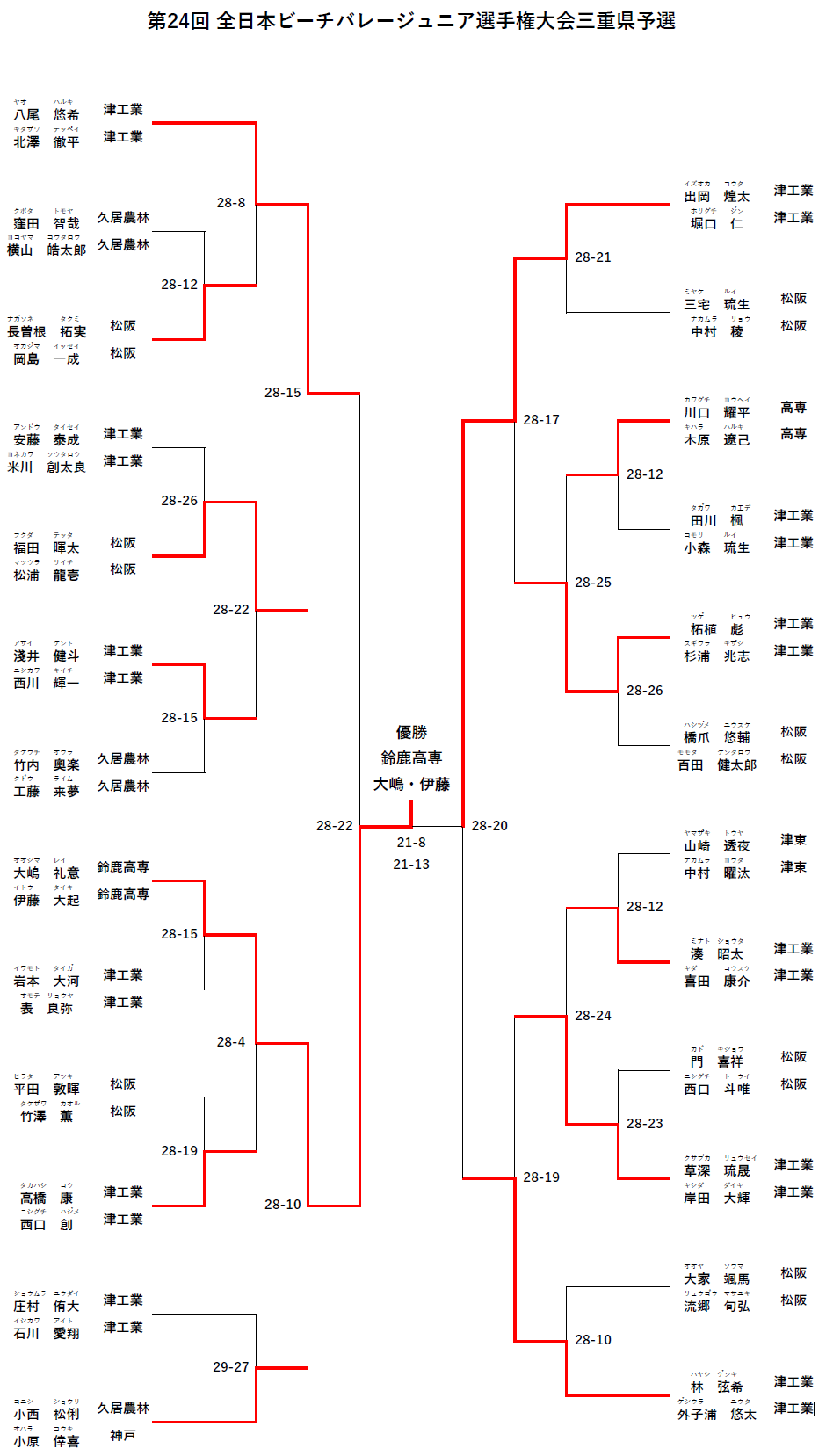 また,同会場で開催されていたビーチバレージャパンJVA第39回全日本ビーチバレーボール選手権大会(男子) 三重県予選会に,バレー部OBである後藤柊人(専攻科1年)さんも吉田頼弘さん(三重大学)とペアを組んで出場し,見事本戦への切符を手にしました!